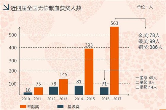 4、我市全國無償獻(xiàn)血奉獻(xiàn)獎(jiǎng)獲獎(jiǎng)人數(shù)創(chuàng)歷史新高
