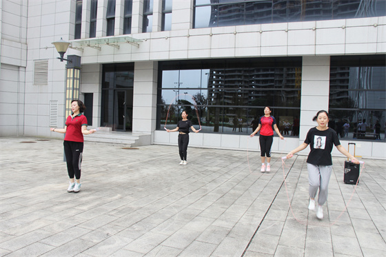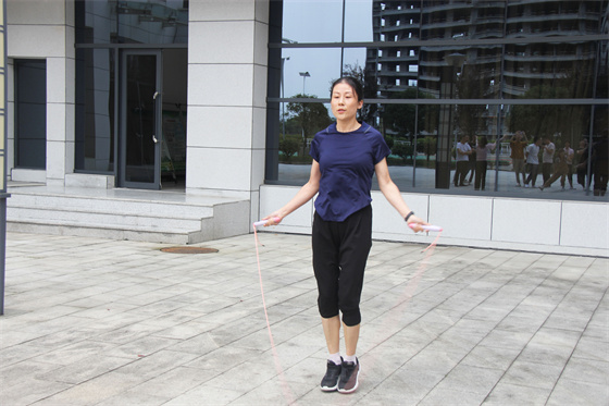 整場比賽分為“單人跳繩”、“雙人跳繩”、“集體跳繩”三個項目,以科室為單位自選項目,職工自由組合,在各項目規(guī)定時間內以完成數量多少決出名次。