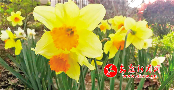 而洋水仙發(fā)芽比郁金香更早,一些調皮的小朋友甚至在這幾天就已經(jīng)冒出頭來窺探世界了。當它長到兩寸高時,你就能看見它那比葉片更厚而顏色偏淺的花蕾,它的花蕾和葉片在接下來的兩個月幾乎是同時長高,最后,豎直的花蕾漸漸彎曲成與葉片成直角,花兒就會在未來的幾天綻放。