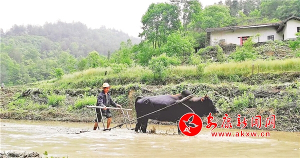 聽說要請(qǐng)他給我們講恒口貢米的故事,他煞有介事地愣了愣,說帶我們?nèi)ヌ镩g看看,再講。過了春分,耕種的土地上,我們感受到的是“農(nóng)家少閑月,五月人倍忙”的景象!在這里,沒有轟隆隆的機(jī)器聲,只用耕牛犁田,育苗平整,農(nóng)忙的身影在正暖的春陽與如織的細(xì)雨中穿梭。