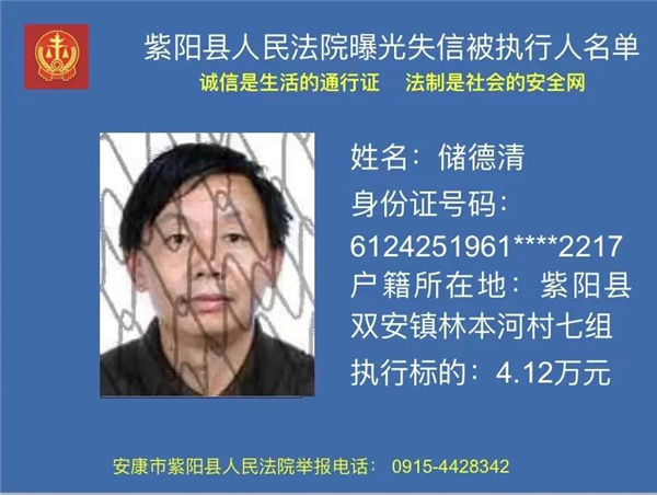 曝光失信 | 紫陽(yáng)縣人民法院:關(guān)于敦促儲(chǔ)德清履行法定義務(wù)的公告