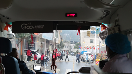 環(huán)顧車內(nèi),面包、牛奶、熱水……這里更像是他們的第二個家。我和司機師傅開玩笑說:“今天出發(fā)夠早的啊,太陽都還沒上班呢?!彼緳C輕描淡寫的說:“這算晚的了,以前去更遠的鎮(zhèn)上,四五點就要出發(fā)?!彼p眼筆直的看向前方,仿佛看見了比路更多的東西,而在我眼里,那不過是車燈照不到盡頭的一片迷霧。