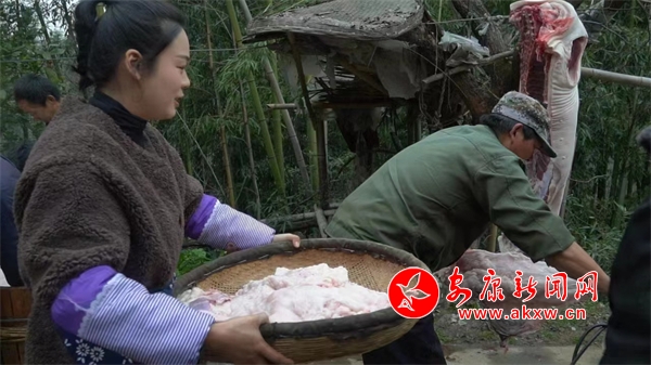 就這樣,抖音號“菲兒姑娘”出發(fā)啦。她平時負(fù)責(zé)策劃及出鏡。在2023年2月9日的采訪中,楊菲對華商報記者說:“我們的視頻一般是從食材的選取開始拍,比如炒臘腸,每個產(chǎn)品都是經(jīng)過精挑細(xì)選,也都是選取當(dāng)?shù)剞r(nóng)戶自己養(yǎng)殖的豬,整個制作過程也都會拍進(jìn)視頻里,就會不斷有粉絲朋友詢問購買臘腸、臘肉?!?022年11月份,僅用半個月時間該賬號幫村民賣完了5000余斤豬肉,還有不少客戶已經(jīng)在預(yù)定明年的臘肉,這讓附近的農(nóng)戶信心倍增。
