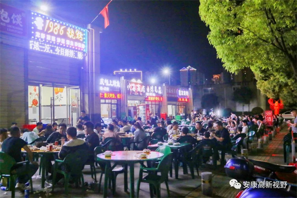 逛累了之后,美食之旅隨之開啟,除了各酒店餐飲可享受安康特色美食外,小吃夜市也成了市民游客在高新區(qū)饕餮一頓的不二選擇,走進(jìn)美食街,燒烤、火鍋、小龍蝦等特色美食讓人目不暇接。華燈初上,商家已進(jìn)入滿載狀態(tài),招呼聲、碰杯聲此起彼伏,店里、店外座無虛席,一桌桌市民游客享受著擼串啤酒的假日自在時光,夜經(jīng)濟(jì)在這個“五一”進(jìn)一步激發(fā)消費的同時,也帶回來了人氣和煙火氣。