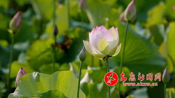 走進(jìn)荷塘,連片的荷葉已經(jīng)舒展開來,朵朵荷花挺立其中,有的已經(jīng)綻開美麗的外衣,爭奇斗艷;有的正孕育著花骨朵,靜靜等待花開。荷塘里花香四溢,粉白、淡紅的荷花在微風(fēng)的輕撫下,搖曳著曼妙的身姿。優(yōu)美的景色吸引了許多游客走進(jìn)荷塘打卡拍照,盡享夏日好時(shí)光。