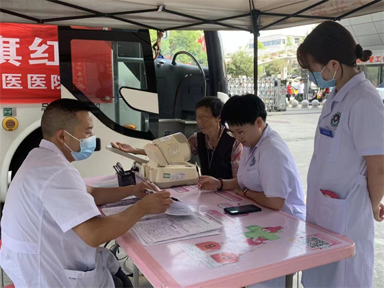 早上10點(diǎn),醫(yī)務(wù)工作者們?cè)讷I(xiàn)血車前排隊(duì)等候,大家井然有序地進(jìn)行信息登記、健康征詢、血壓測量等程序。