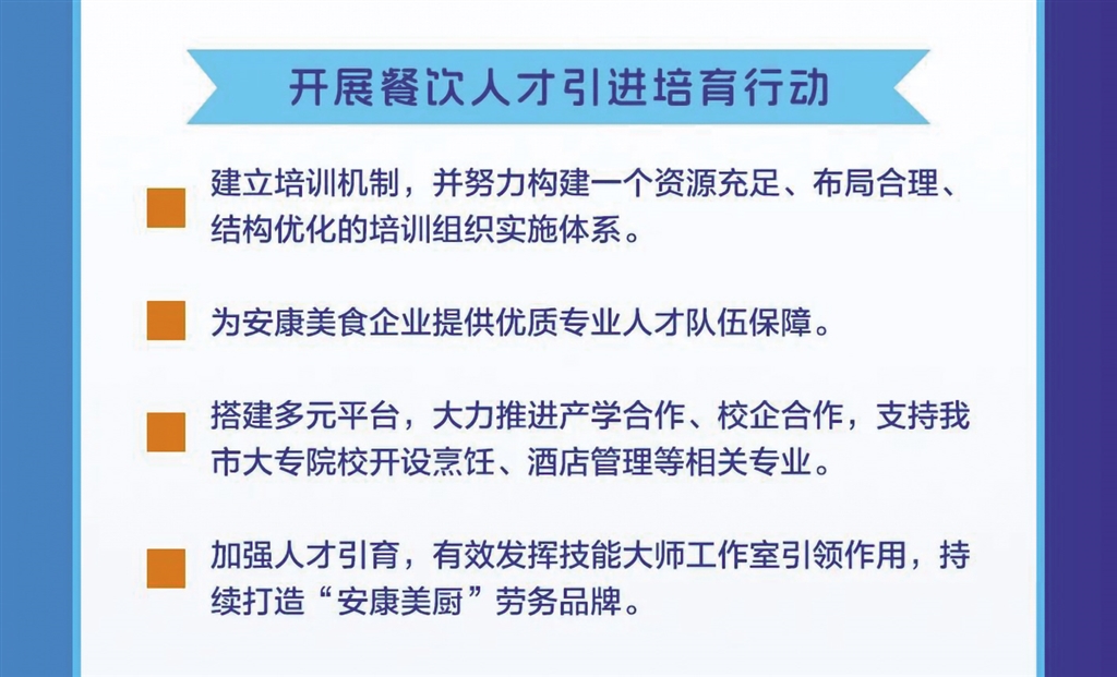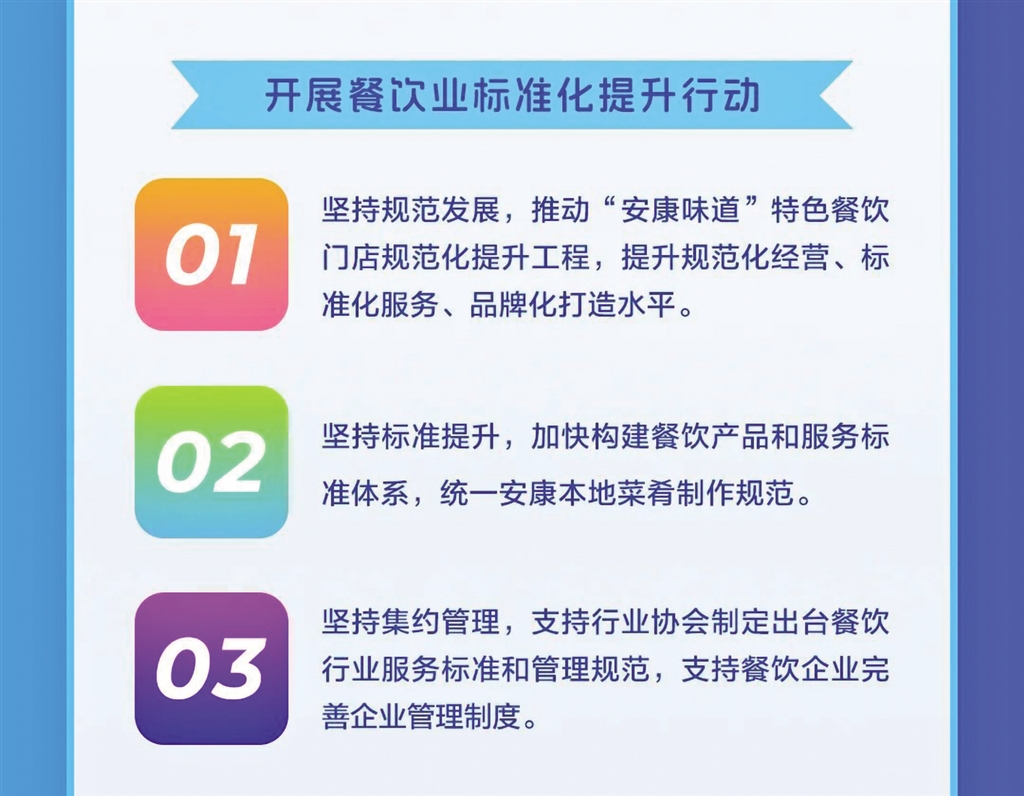 日前,安康市商務(wù)局等11部門聯(lián)合發(fā)布《關(guān)于進(jìn)一步推進(jìn)全市餐飲業(yè)高質(zhì)量發(fā)展的實(shí)施意見》,本期帶您一圖讀懂其重點(diǎn)任務(wù)。