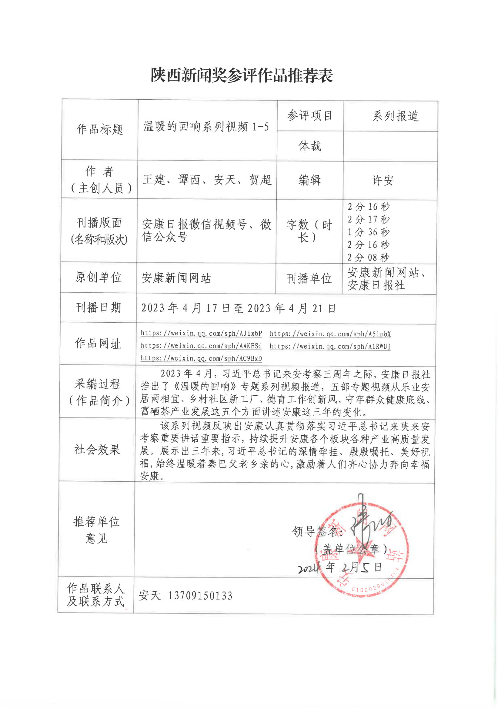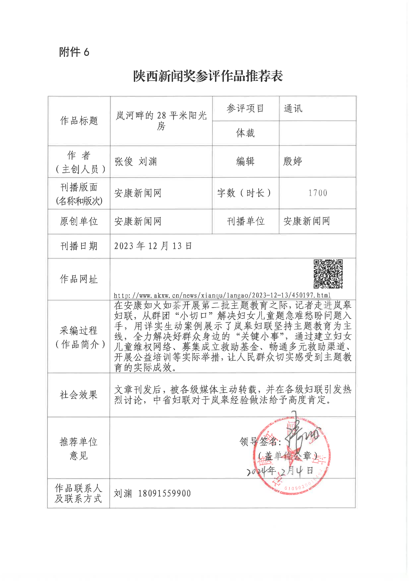 經(jīng)過1月30日編委會(huì)推薦、社黨委研究決定,擬推薦以下4件新聞作品參評2023年度“陜西新聞獎(jiǎng)”。公示時(shí)間從2024年3月6日至2024年3月12日,公示期為5個(gè)工作日。如有不同意見,請向安康日報(bào)社機(jī)關(guān)紀(jì)委、新聞管理部反映。