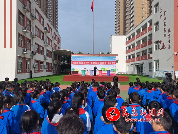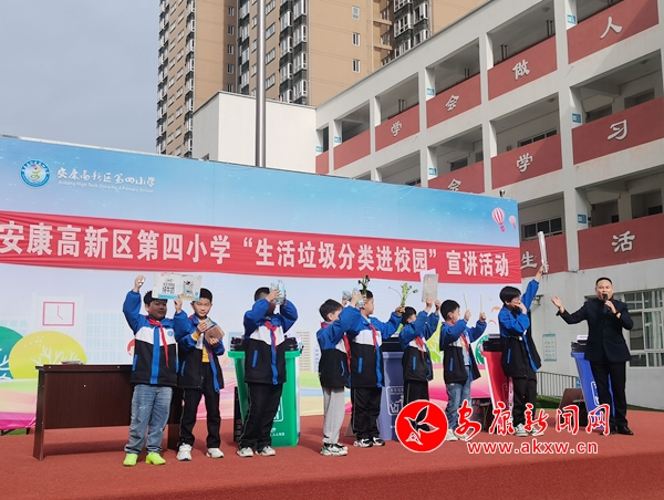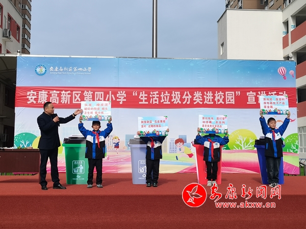 本網(wǎng)訊(通訊員 王宗濤)“同學(xué)們,我們是環(huán)境保護小天使,我們要讓山更青,水更綠,天更藍,我們生活的家園更美麗!我們應(yīng)該養(yǎng)成垃圾分類的好習慣。”4月9日上午,春陽燦爛的安康高新區(qū)第四小學(xué)的操場上,生活垃圾分類“進校園”宣講活動火熱進行中。