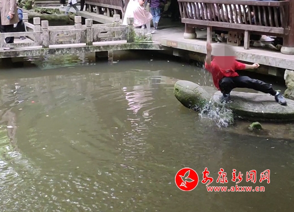 5月2日,香溪洞風(fēng)景名勝區(qū)有游客違反景區(qū)安全規(guī)定,存在攀爬護(hù)欄,下池嬉水等不文明旅游行為。(實(shí)習(xí)記者 冉麗雯)