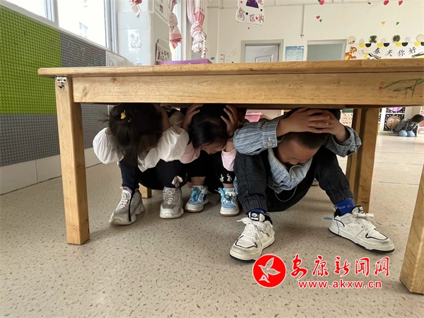 隨著室內(nèi)避震警報(bào)響起,防震演練正式開始,老師們迅速啟動(dòng)《防震疏散演練應(yīng)急預(yù)案》,各班教師立即引導(dǎo)幼兒盡量躲避在室內(nèi)墻根、墻角或床、桌等相對(duì)堅(jiān)硬的家具與三角區(qū)避震空間避險(xiǎn),引導(dǎo)幼兒身體彎曲,降低身體重心,盡最大努力保護(hù)好頭部。逃生疏散中老師不斷提醒幼兒們不要擁擠,手保護(hù)頭部、彎腰,迅速且有序沿著指定疏散路線撤離到安全區(qū)域,同時(shí)檢查是否有掉隊(duì)的孩子,確保每位幼兒安全撤離。