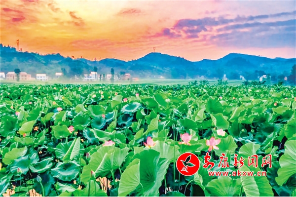 “嗚——”一聲汽笛長鳴,我們三個不約而同地扭頭望去,一輛“清風號”紅色小火車載著滿滿一車游人在荷塘間穿梭,車上的人一臉幸福自豪,盡享漫游的快樂。江南的荷塘里是采蓮的畫船,這里是奔馳的火車,倒也有趣。我的腦海里閃現一個念頭:既然有陜南,何必下江南??
