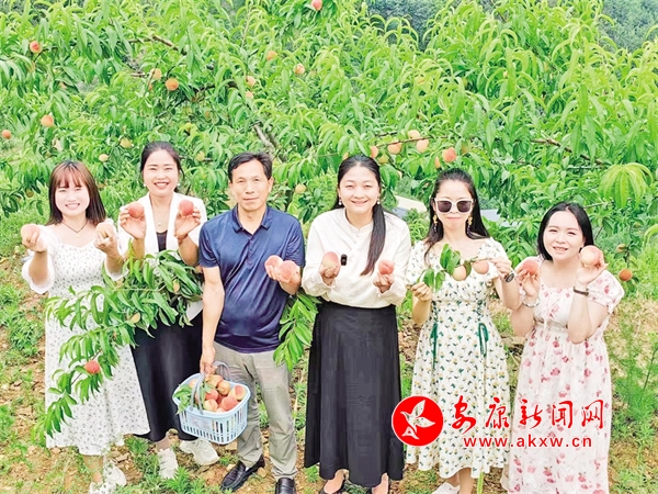 “水蜜桃熟啦,歡迎大家來(lái)采摘!”陳顯攀一邊說(shuō),一邊搓著手。果園里是一群正在采摘桃子的游客,最惹眼是身著彩衣的年輕姑娘們,她們挎著竹籃,穿梭在桃樹林間,艷陽(yáng)映紅了蜜桃,也映紅了她們的臉龐。