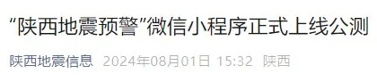 “陜西地震預(yù)警”微信小程序正式上線公測(cè)
