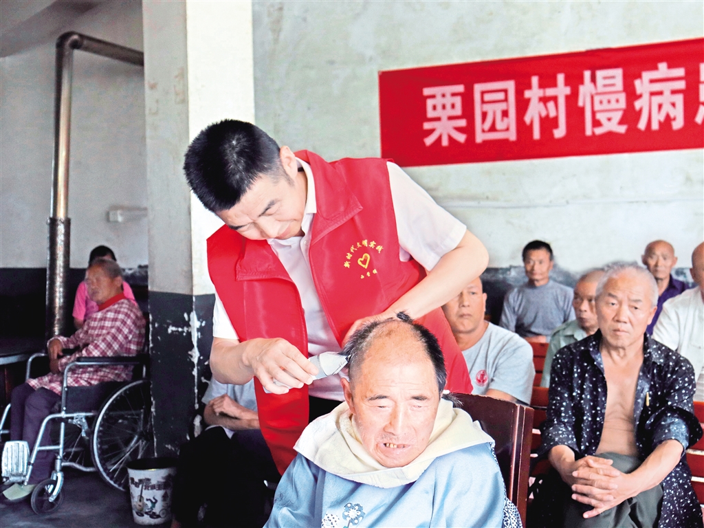為弘揚(yáng)中華民族“孝老、敬老、愛(ài)老”傳統(tǒng)美德,8月7日,白河縣西營(yíng)鎮(zhèn)機(jī)關(guān)黨支部組織黨員來(lái)到西營(yíng)鎮(zhèn)區(qū)域敬老院開(kāi)展“弘揚(yáng)孝義善舉 倡導(dǎo)文明鄉(xiāng)風(fēng)”志愿服務(wù)活動(dòng)。活動(dòng)中,志愿者們?yōu)槔先藗兲峁┝烁啐g補(bǔ)貼認(rèn)證、修剪指甲、打掃衛(wèi)生等志愿服務(wù)。(劉焱 胡曉華 攝)