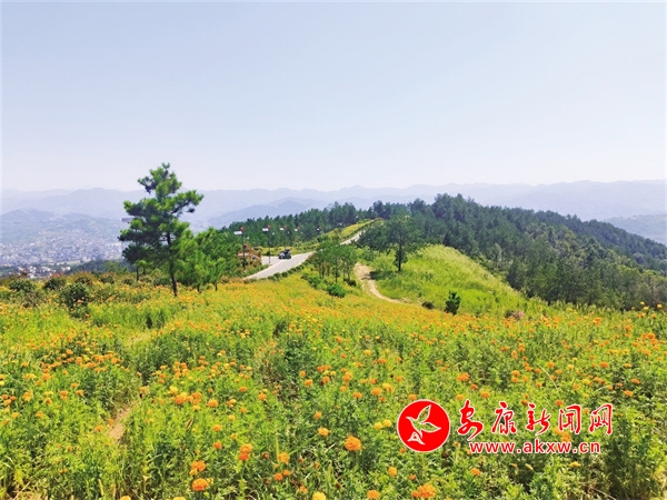為了營造更好的旅游氛圍,牛嶺社區(qū)通過設(shè)置籬笆墻、種植四季花卉等多種方式,改造牛嶺社區(qū)黨群服務(wù)中心至塔梁公路主干道兩側(cè)35戶居民庭院,栽種香樟樹350株、紅葉石楠17000平方米,綠化美化牛嶺社區(qū)黨群服務(wù)中心至附近公路村組主干道,并且在戰(zhàn)役主陣地之一的塔梁主干道兩側(cè)種植2000平方米的萬壽菊。當(dāng)前,正值萬壽菊盛開的時(shí)候,牛蹄嶺戰(zhàn)役遺址公園的主干道成了花的海洋,吸引安康城區(qū)廣大市民和旅游愛好者前來暢游。