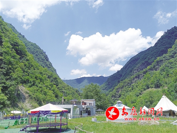 立秋這天,為了避暑,我和友人結(jié)伴,頂著38度的高溫從安康城區(qū)出發(fā),經(jīng)平鎮(zhèn)高速公路,一個半小時到達干洲河上游的五眼泉露營基地,剛好正午12點半,而這里的室外溫度只有22度。打開車門,山風(fēng)一吹,一身暑氣頓時退去,隨之而來的是山風(fēng)中的樹木清香、山花濃香,以及河風(fēng)吹來的溫潤之感。