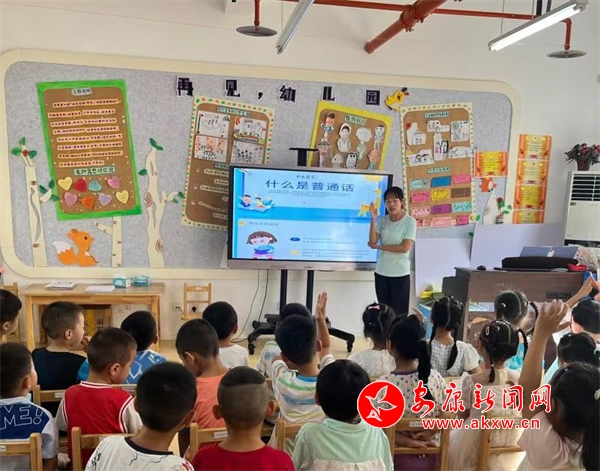 在第27屆全國(guó)推廣普通話宣傳周之際,旬陽市第一幼兒園圍繞“加大推普力度,筑牢強(qiáng)國(guó)語言基石”深入宣傳《國(guó)家通用語言文字法》,進(jìn)一步增強(qiáng)幼兒語言文字規(guī)范意識(shí)和推普參與意識(shí),營(yíng)造敢說、想說、會(huì)說的語言環(huán)境,推進(jìn)幼兒園的普通話教育。(通訊員 王苗)?