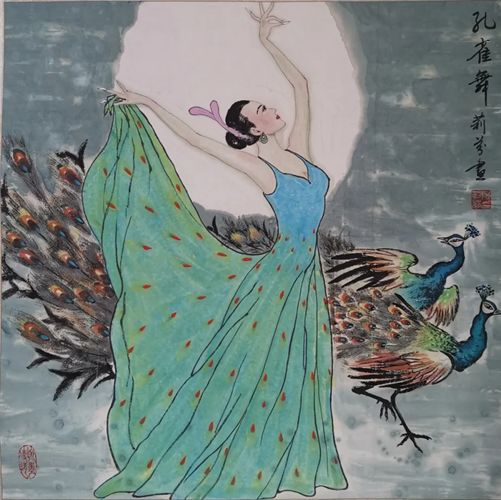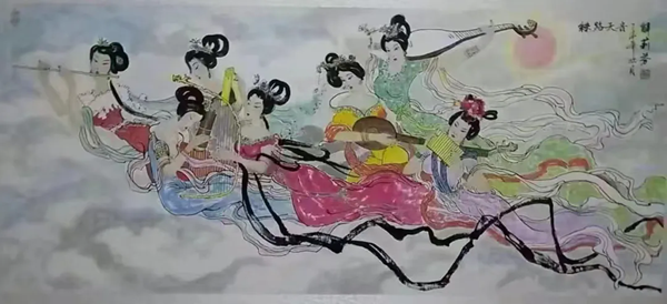 解大姐是陜北人,性格開朗、直率,說(shuō)話中間或帶出一些濃重的陜北口音。雖說(shuō)她主業(yè)從于政界,但她微笑的背后卻潛藏著不可掩飾的藝術(shù)天賦,揮發(fā)著令人奪目的藝術(shù)才情。繁雜的政務(wù)工作之余,她創(chuàng)作不輟,堅(jiān)持不懈,居然在多個(gè)藝術(shù)門類收獲頗豐,好評(píng)連連。寫小說(shuō),她寫出幾十萬(wàn)字的長(zhǎng)篇出版發(fā)行;寫劇本,竟拍成了電影予以公映;學(xué)國(guó)畫,亦讓藝術(shù)界的大咖贊口不絕。我雖不才,空有浮名,但深耕藝界多年,對(duì)于其中的好賴還能分出一二。我感到,一個(gè)人的人品和藝品基本一致,解大姐的藝術(shù),是扎根于她熟悉的陜北大地的藝術(shù),是生長(zhǎng)在山峁峁上經(jīng)歷風(fēng)霜雨雪的藝術(shù),就像那陜北倔強(qiáng)的疙瘩柳,散發(fā)著對(duì)土地對(duì)生活的親近和熱情,對(duì)人生價(jià)值實(shí)現(xiàn)的不屈和追求。看到她的國(guó)畫新作,有陜北剪紙等民間藝術(shù)的滋養(yǎng)和影響,真切而樸實(shí)。她的飛天人物系列,泥古而不落窠臼,使我想到疙瘩柳條隨風(fēng)擺動(dòng)的婀娜風(fēng)姿,溫溫潤(rùn)潤(rùn),令人遐思和向往;她的花鳥畫作,使我想到陜北山野一片蒼茫之間,一朵兩朵盛開的山丹丹花,嬌艷得令人不忍觸手;她的山水畫作,又猶如陜北山原上嫩黃的棗花,洋溢著撲面而來(lái)的質(zhì)樸、清新和率真之氣。