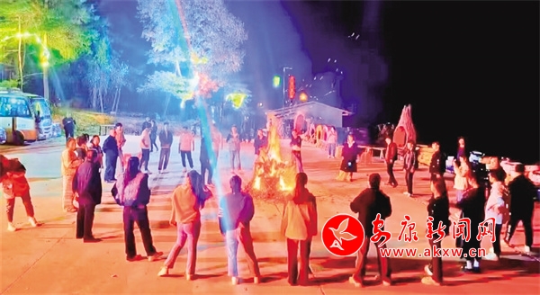 夜幕降臨,篝火熊熊燃起,當(dāng)動(dòng)感的音樂響起,游客們手拉手圍成圈,繞著篝火載歌載舞,感受著熱烈的秋日浪漫,這一場(chǎng)景也成為此次活動(dòng)的一大亮點(diǎn)。