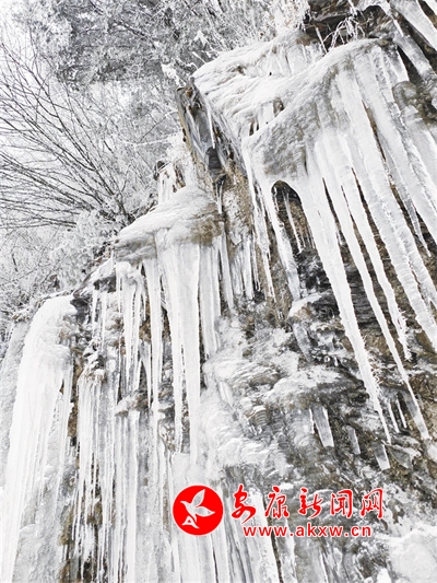 嶙峋的怪石、陡峭的崖壁,都被厚厚的積雪所覆蓋,冰凌從巖石上垂落,長短不一,粗細(xì)各異,有的尖銳如劍,有的靈動如晶,為這寒冷的世界增添了一抹亮麗的色彩。偶爾能聽到冰層下傳來的微弱流水聲,似是大地深處傳來的幽咽,訴說著對春的渴望與期待。
