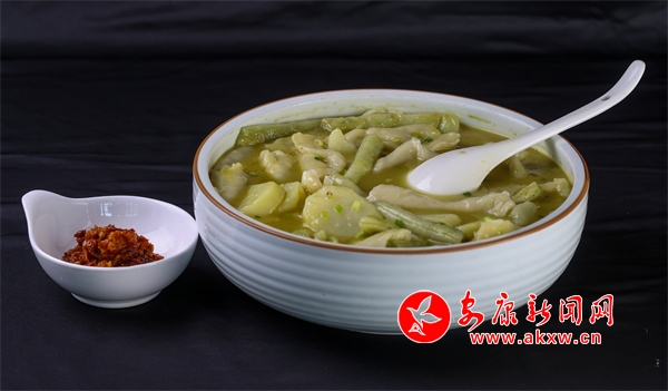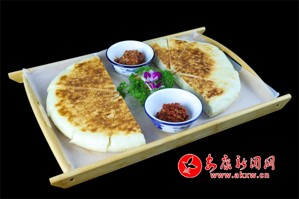 “甜酒火燒饃”,是石泉縣幾代人美食智慧的積累,傳承至今,是深受人們喜愛的小吃。它是采用古老傳統(tǒng)老酵面加甜酒發(fā)面,將老酵面、甜酒加入溫水后,再加入面粉一起攪拌均勻后再揉面。把面團(tuán)揉制光亮后放置幾小時待其自然發(fā)酵。等到面團(tuán)成發(fā)泡蜂窩狀態(tài),才可以開始將面團(tuán)做成圓形,在用搟面杖搟薄圓形面團(tuán)放入柴火灶鍋中,撒上芝麻,小火炕制一面黃在翻面炕制兩面色澤金黃。吃進(jìn)嘴里有小麥淡淡的清香味,也有甜酒的甜香味,回味無窮。杜光發(fā)制作的這道小吃獲得安康市2024年“安康味道”名小吃。