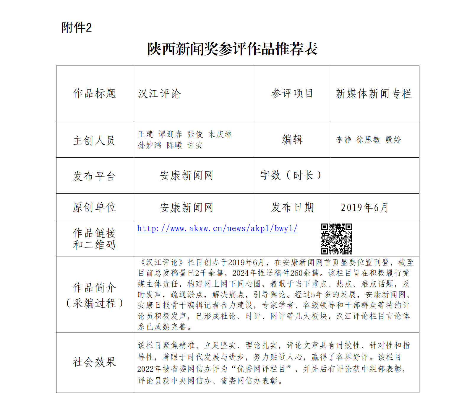 經(jīng)過(guò)社黨委研究決定,擬推薦以下2件新聞作品參評(píng)“2024年度陜西新聞獎(jiǎng)融合報(bào)道、應(yīng)用創(chuàng)新和新媒體新聞專(zhuān)欄”。公示時(shí)間從2025年1月6日至2025年1月10日,公示期5個(gè)工作日。如有不同意見(jiàn),請(qǐng)向安康日?qǐng)?bào)社機(jī)關(guān)紀(jì)委、新聞管理部反映。