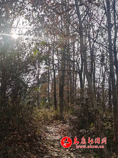 自彎彎樹往上再走一陣兒,便到了平緩開闊處。這里的林子里大多是松樹,空氣中彌漫著一股清新而獨(dú)特的氣息,那是松香的味道。金黃的松針鋪在地上,踩上去軟綿綿的,令人產(chǎn)生無限遐想。一只松鼠正在枝頭啃食松果,見有人走近,“嗖”的一聲跳躍到另一棵樹上,松果也隨之掉落,彈蹦著滾出老遠(yuǎn)。樹旁的寒莓交織如網(wǎng),下面零星地生長著半枯的毛蕨,艷麗的火棘十分搶眼,一串串結(jié)滿枝頭,遠(yuǎn)遠(yuǎn)望去,就像個個待掛的大紅燈籠。一群群麻雀兒飛來飛去,呼朋引伴,嘰嘰喳喳,暢享著冬日陽光下的溫暖。我們有說有笑,沿著緩緩地小路徜徉,前行至又一道山梁。只見這里樺櫟高大,松柏森森,化香粗壯,青桐筆挺,猶如將軍列陣,威風(fēng)凜凜,又似衛(wèi)兵站隊(duì),夾道歡迎。在這幽深的林子里,有株柏樹傾而未倒,長過小路的上方,無數(shù)枝條頑強(qiáng)挺立、狀如綠屏,竟形成一道靚麗的拱門。此時,你當(dāng)停下匆忙的腳步,站在這高崗上放眼山形地貌,觀察四周景象,探尋相互關(guān)聯(lián),洞悉自然規(guī)律。你看,在那迂緩的山腳下,多是權(quán)木叢生藤蔓交織,少有茂密森林參天大樹,而在這土地瘠薄、風(fēng)摧雨折的梁頂上,卻是古木高聳、巨樹林立,一定會覺得彩虹總在風(fēng)雨后,風(fēng)雨成材所必歷。更能體會到只有擇高處立身,于難中求進(jìn),無懼風(fēng)吹雨打、千磨萬擊,方能根深葉茂、本固枝榮、堅(jiān)韌不拔、生機(jī)無限。