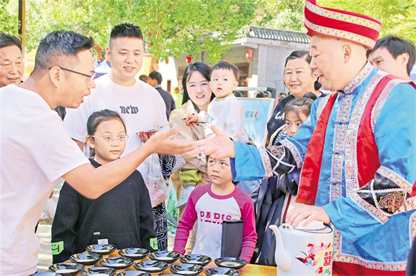 來自臺灣的游客阿偉第一次體驗這“驚心動魄”的待客禮,雙手接碗,仰頭飲盡,再用力將碗口朝下摔向青石板?!斑旬?dāng)”一聲脆響,瓷片四濺,周圍頓時響起一片喝彩?!八ね氲臅r候,心里真痛快!”阿偉笑著說。
