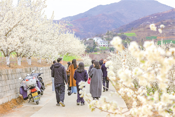 三月上旬,“櫻花之約·和美鄉(xiāng)村”示范展演在段家河薛家灣上演,櫻桃花海中,歌舞、漢服走秀、搖滾樂(lè)、表演唱、樂(lè)器演奏、小品等群眾喜聞樂(lè)見(jiàn)的節(jié)目,將鄉(xiāng)土藝術(shù)與特色民俗文化深度融合,舞鄉(xiāng)情、唱鄉(xiāng)音、觀演出、賞春景,以村莊房舍和漫山櫻桃花為背景,為游客送上了一道道精彩紛呈的暢游“花”樣春日“文化大餐”。