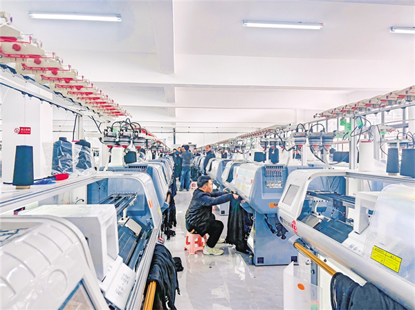 工人正在吉創(chuàng)暉羊毛衫工廠調(diào)試機器