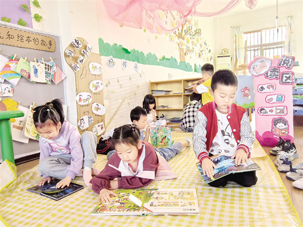 4月23日,漢陰縣春蕾幼兒園的小朋友正在閱讀兒童讀物。(陳浩 攝)