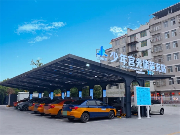據(jù)了解,場站配置了360kW和480kW聚合功率池分體充電設(shè)備,提供1個液冷超充車位(最大600A電流)和19個快充車位(最大250A電流)。車位上方配置80Wp光伏車棚并搭載215kWh儲能,每年可供給清潔能源發(fā)電量約10萬度,每年可減少二氧化碳排放60噸,節(jié)省約22噸標準煤。通過“自主消納、削峰填谷、峰谷套利、智能調(diào)配”的運行模式,將有效降低電力成本,達到降本增效的目的,為城市能源結(jié)構(gòu)轉(zhuǎn)型提供了可復(fù)制、可推廣的實踐樣本。