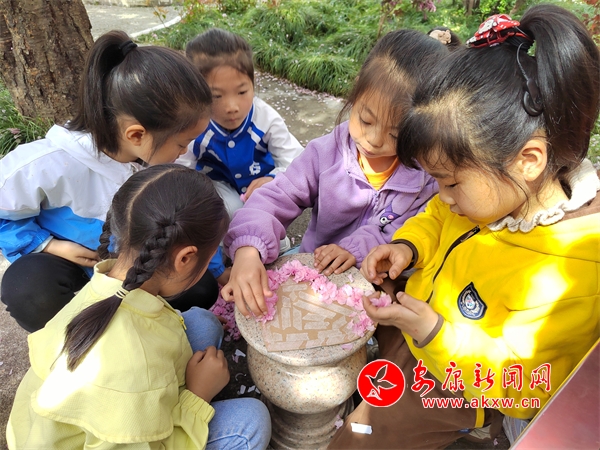春日校園,櫻花盛放,粉白花瓣如雪花輕舞,鋪就夢幻花毯。鎮(zhèn)坪縣洪石小學(xué)的美術(shù)課別開生面,孩子們?cè)跇湎麻_啟粘花手工之旅,融入德育滋養(yǎng)。讓孩子親近自然,發(fā)揮創(chuàng)造力,學(xué)會(huì)愛護(hù)自然與團(tuán)隊(duì)協(xié)作。(通訊員 劉兆敏)?