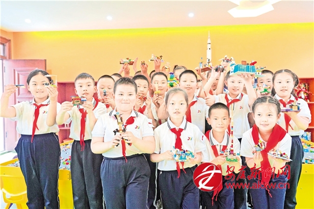 與古箏社團(tuán)室相鄰的“樂拼未來”樂高室里,學(xué)生們正分組搭建自己喜歡的模型。江蘇金壇捐贈的樂高設(shè)備,為學(xué)校開展科創(chuàng)教育提供了有力支撐。過去,學(xué)校課程以理論教學(xué)為主,現(xiàn)在孩子們可以通過動手實(shí)踐,將創(chuàng)意轉(zhuǎn)化為現(xiàn)實(shí)。學(xué)校依托這些資源,成立了數(shù)學(xué)思維訓(xùn)練社團(tuán)。社團(tuán)以提升學(xué)生綜合素養(yǎng)為核心目標(biāo),著重培養(yǎng)學(xué)生專注力與沉穩(wěn)耐心的學(xué)習(xí)品質(zhì)。訓(xùn)練過程中,學(xué)生不僅需要通過動手實(shí)踐與腦力思考開展科學(xué)探究,還需在零件拼接的實(shí)踐活動中,以細(xì)致嚴(yán)謹(jǐn)?shù)膽B(tài)度反復(fù)嘗試,逐步探索出正確的拼接方式,在實(shí)踐中深化對數(shù)學(xué)思維的理解與運(yùn)用。