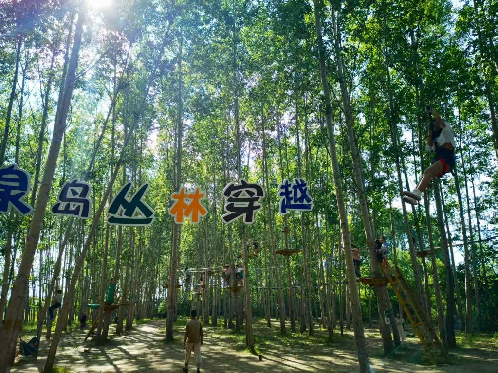 游客在小朱家村的龍泉島度假村體驗叢林穿越。(受訪者提供)