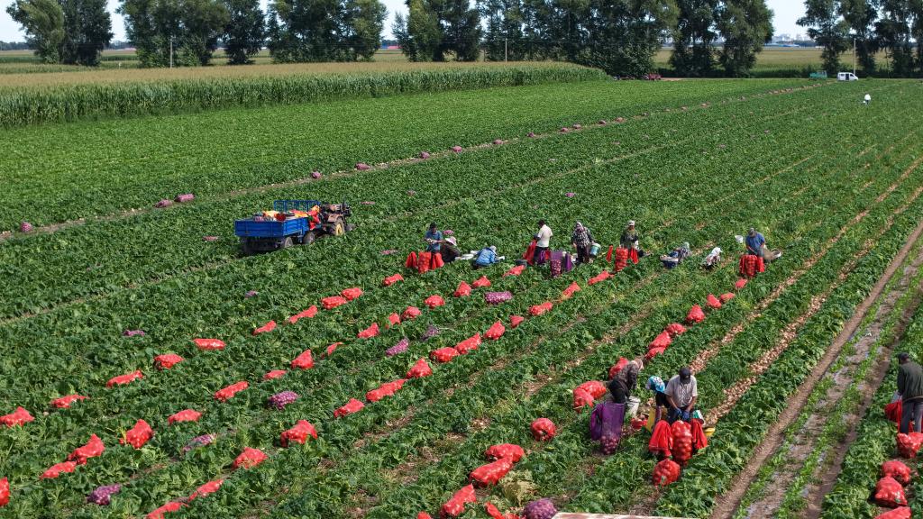 黑龍江省齊齊哈爾市梅里斯達斡爾族區(qū)雅爾塞鎮(zhèn)紅星村洋蔥種植基地洋蔥豐收。 新華社發(fā)(鄂洪波攝)