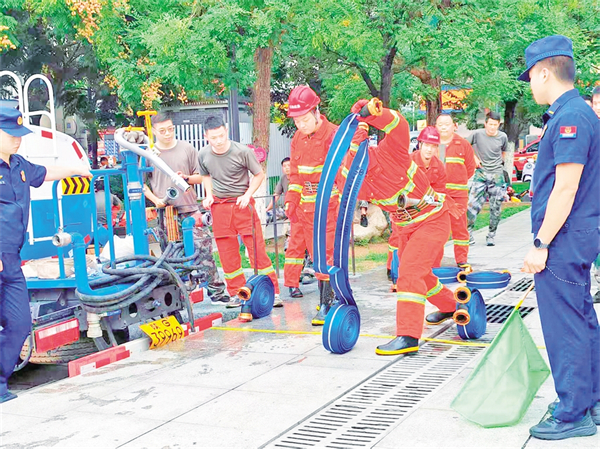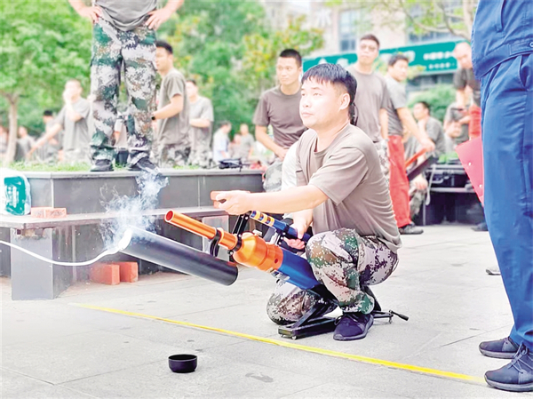 邱凱介紹,該鎮(zhèn)應急救援隊由鎮(zhèn)級救援隊、15個村級救援分隊和水上應急救援隊組成,共17支隊伍278人?!盀榱诉@次比武,后柳鎮(zhèn)收到通知后就積極籌備。兩個月里,參賽隊員除了到縣消防救援大隊接受專業(yè)培訓外,平時也堅持每周訓練?!鼻駝P指著場邊的灑水車說,“這輛灑水車是鎮(zhèn)上自己改造的,不僅成本低,也更適合鎮(zhèn)情實際,五層樓以上的救援也能覆蓋。?