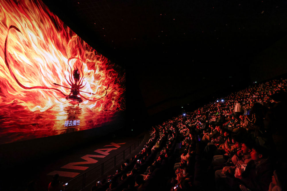 2025年2月25日,觀眾在貴陽越界影城IMAX影廳內(nèi)觀看電影《哪吒之魔童鬧?!?。動畫電影《哪吒之魔童鬧?!纷?月29日上映后票房一路高歌猛進,僅用8天便登頂中國影史票房榜,隨后成為全球單一市場票房冠軍、全球動畫電影票房冠軍。2025年以來,國家電影局等相繼啟動“跟著電影品美食”“跟著電影去旅游”“中國電影消費年”活動,充分發(fā)揮電影對提振消費的積極作用;各地文旅部門等通過發(fā)布觀影消費券、舉辦主題活動等形式推動影旅融合,發(fā)展票根經(jīng)濟。
