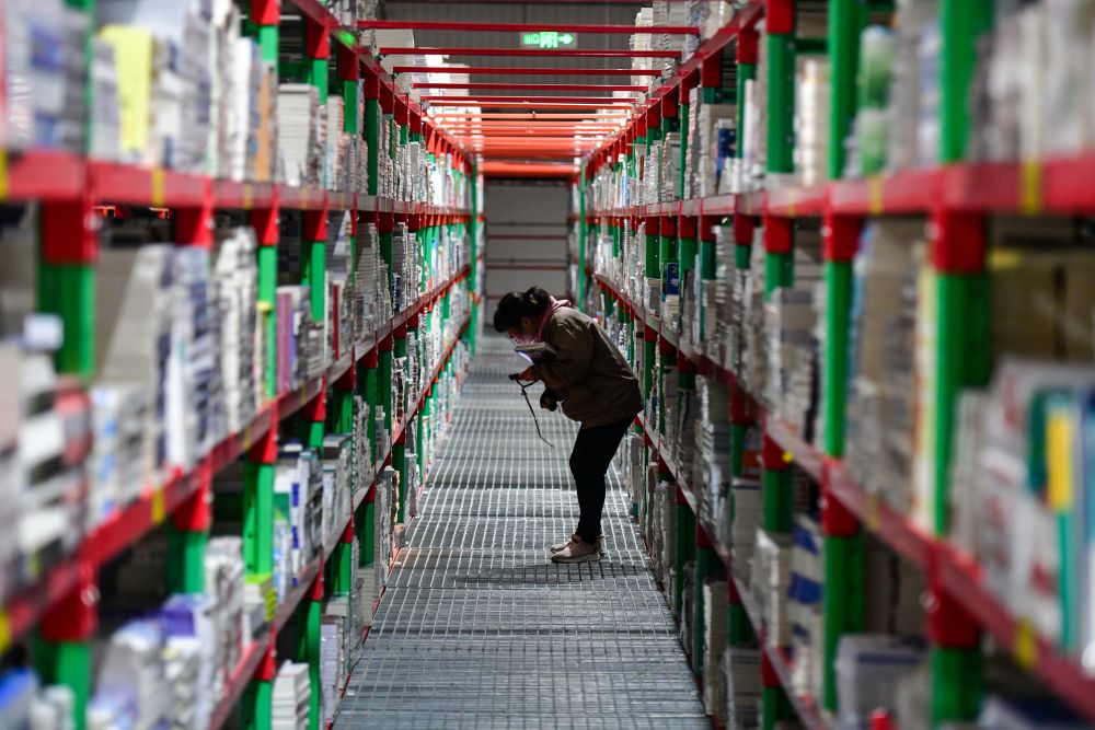 2025年2月19日,工作人員在泰安新聞出版小鎮(zhèn)圖書倉庫內(nèi)整理書籍。近年來,山東省泰安市立足出版印刷產(chǎn)業(yè)優(yōu)勢,打造泰山新聞出版小鎮(zhèn),通過拉長壯大產(chǎn)業(yè)鏈,推動產(chǎn)業(yè)集聚發(fā)展,構(gòu)建龍頭引領(lǐng)、鏈條延伸、集群共進的出版印刷產(chǎn)業(yè)“雁陣”。目前,小鎮(zhèn)已吸引60余家企業(yè)入駐,涵蓋編輯出版、印刷發(fā)行、倉儲物流、版權(quán)交易、研學(xué)旅游等產(chǎn)業(yè)鏈各環(huán)節(jié)。