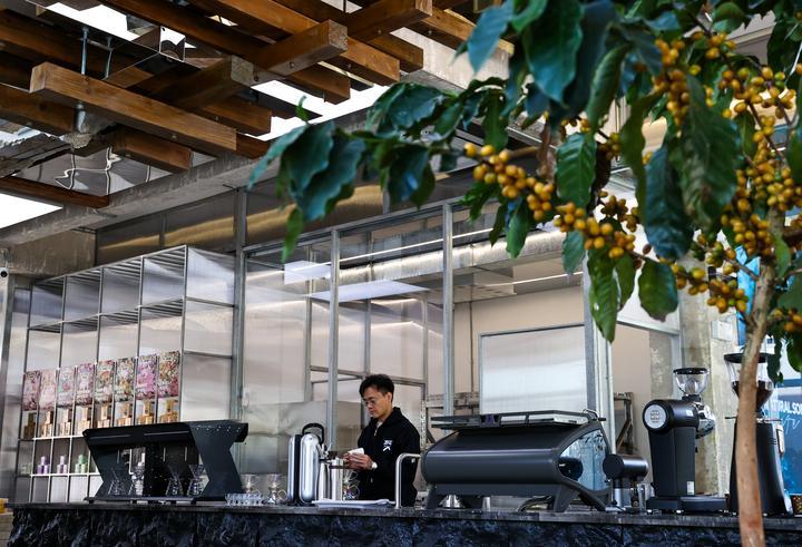2025年12月10日,旅居云南的韓君瑋在位于昆明的南來盛咖啡店內(nèi)制作咖啡。韓君瑋自清華大學(xué)畢業(yè)后,已在咖啡行業(yè)耕耘十余年。2024年,他受聘成為云南一家老字號(hào)咖啡品牌的品牌總顧問,從此投身到云南咖啡的產(chǎn)品研發(fā)和品牌推廣工作中。一年多來,他每月都會(huì)來到昆明,短則幾天,長(zhǎng)則數(shù)周,開啟了一種“半旅居、半工作”的生活模式?!霸颇巷L(fēng)景優(yōu)美、氣候宜人,我很享受這樣的狀態(tài)?!表n君瑋說。