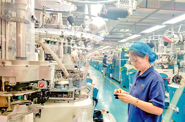 智能織襪工廠(chǎng)生產(chǎn)線(xiàn)一角
