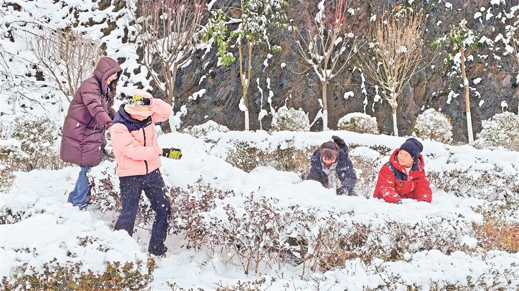 元旦期間,游客來到紫陽縣米溪梁山頂,堆雪人,打雪仗,親近大自然,享受假日的愉悅。 儲(chǔ)茂銀 攝