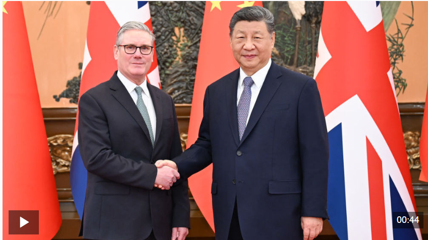 習(xí)近平指出,歡迎斯塔默首相先生訪華。你公開提出中國是機遇、同中國接觸是必選項,我對此表示贊賞。中方愿同英方發(fā)展長期穩(wěn)定的全面戰(zhàn)略伙伴關(guān)系。中國農(nóng)歷馬年春節(jié)即將到來。相信你這次訪問一定能取得成功,兩國合作也一定能一馬當(dāng)先,為中英關(guān)系和兩國合作開新局。