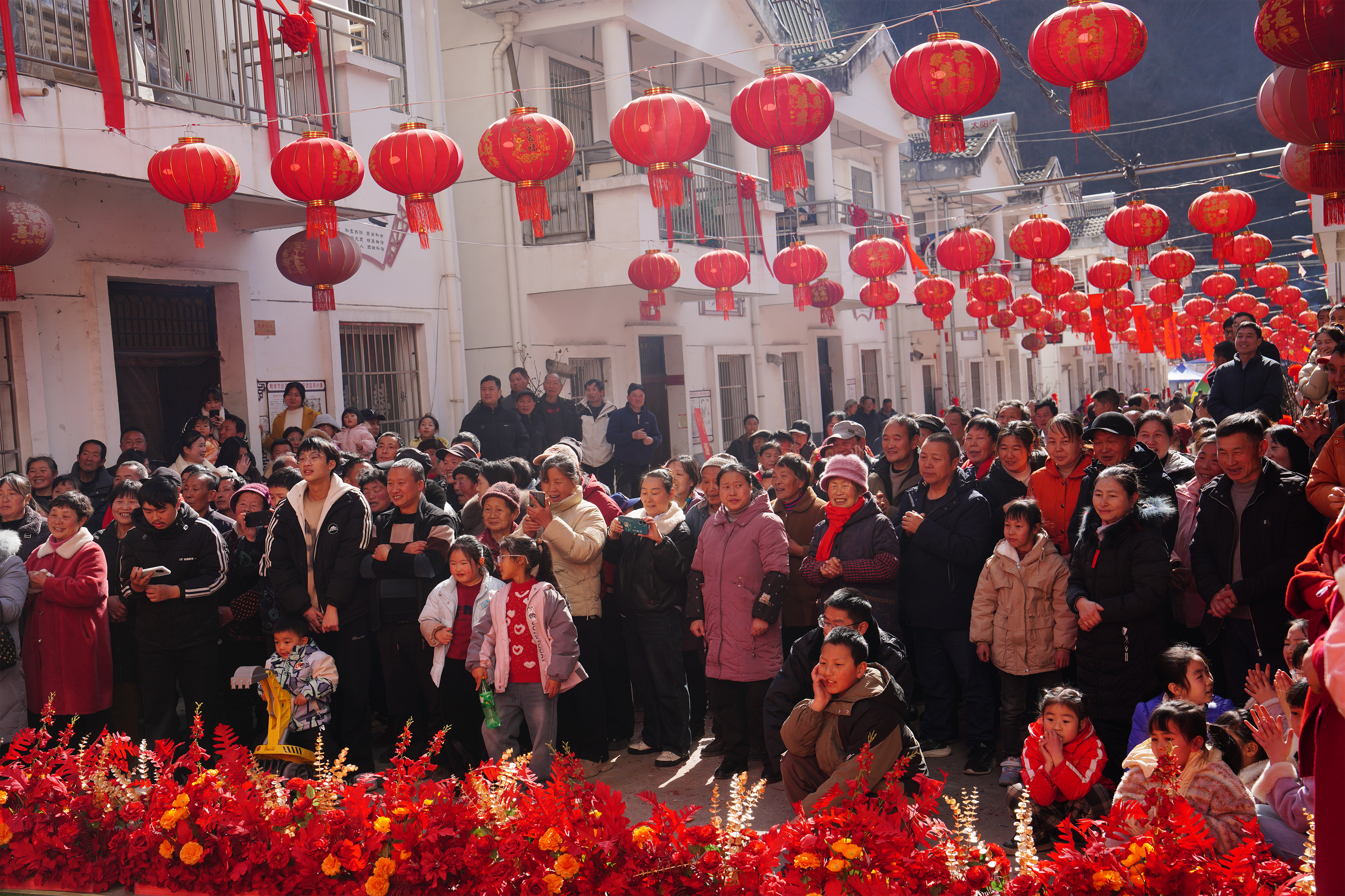 △ 2月2日,村民和游客觀看新場鎮(zhèn)“村晚”節(jié)目表演。