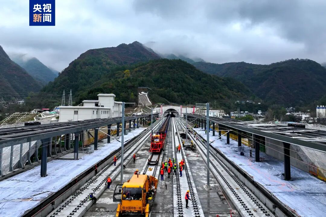 西康高鐵穿越秦巴山區(qū),橋隧比高達(dá)94%。施工單位需在復(fù)雜的地質(zhì)條件下完成雙線全長(zhǎng)共341.49公里的鋼軌鋪設(shè),面臨道岔運(yùn)輸難、交叉作業(yè)多等嚴(yán)峻挑戰(zhàn)。