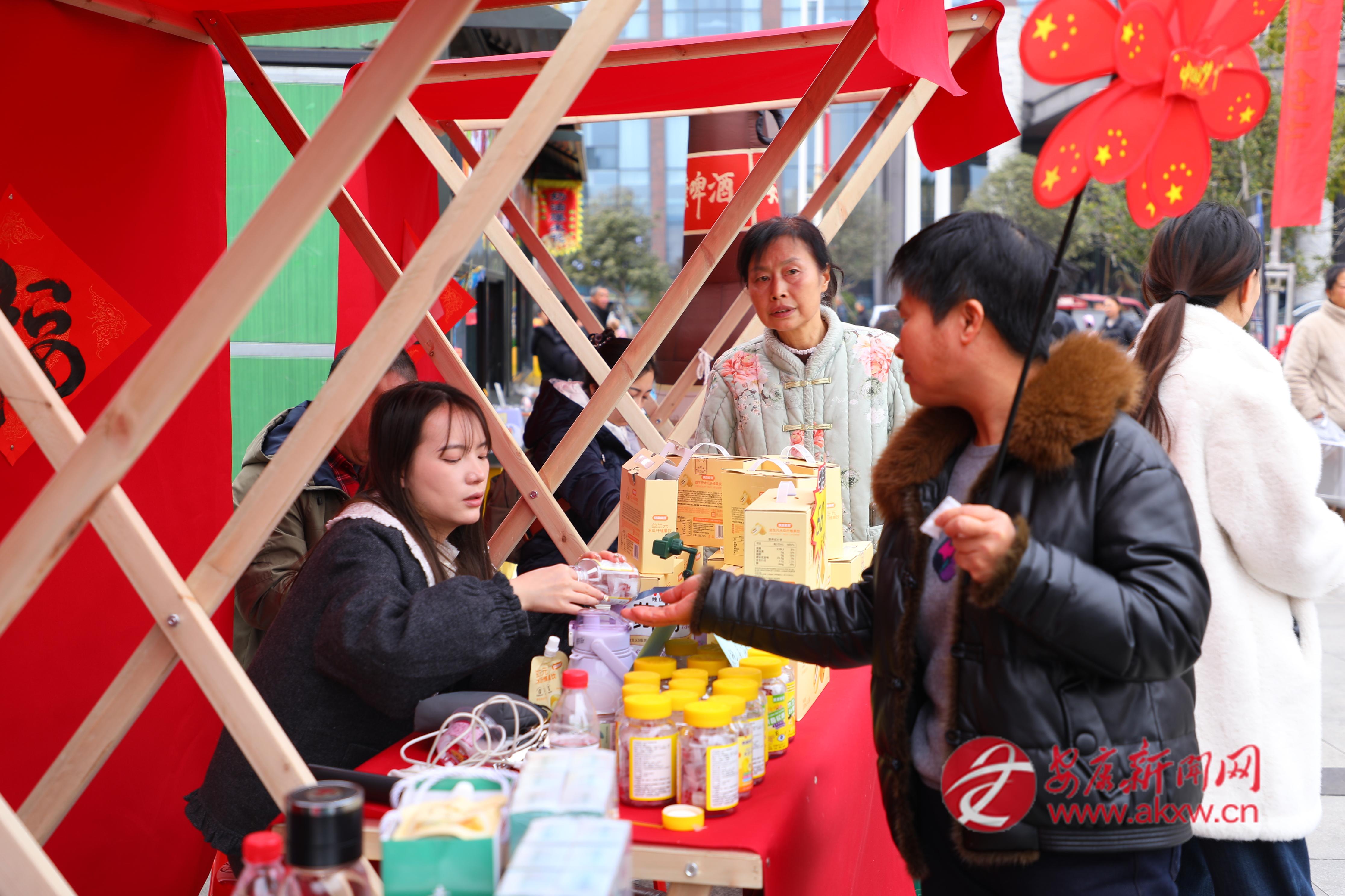 舞臺(tái)之上好戲連臺(tái),集市之中更是熱火朝天。年貨展銷區(qū)內(nèi)攤位林立、人潮涌動(dòng),20余家企業(yè)帶來的安康富硒茶、紅薯粉條、木瓜飲、土蜂蜜、黃連牙膏等安康特色產(chǎn)品琳瑯滿目,讓人目不暇接?!奥犃藬傊髦v解茶山生態(tài)和制茶工藝,感覺買得特別踏實(shí),帶回去自己喝或當(dāng)作新年伴手禮都合適,能實(shí)實(shí)在在支持本地茶農(nóng),這年貨買得暖心又有意義?!笔忻窳蜗壬嶂鴦傎徣氲牟枞~笑著說。