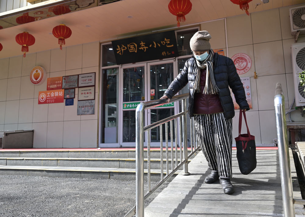 73歲的社區(qū)居民走在專為老年人和行動不便者設置的緩步斜坡步道上(2月10日攝)。