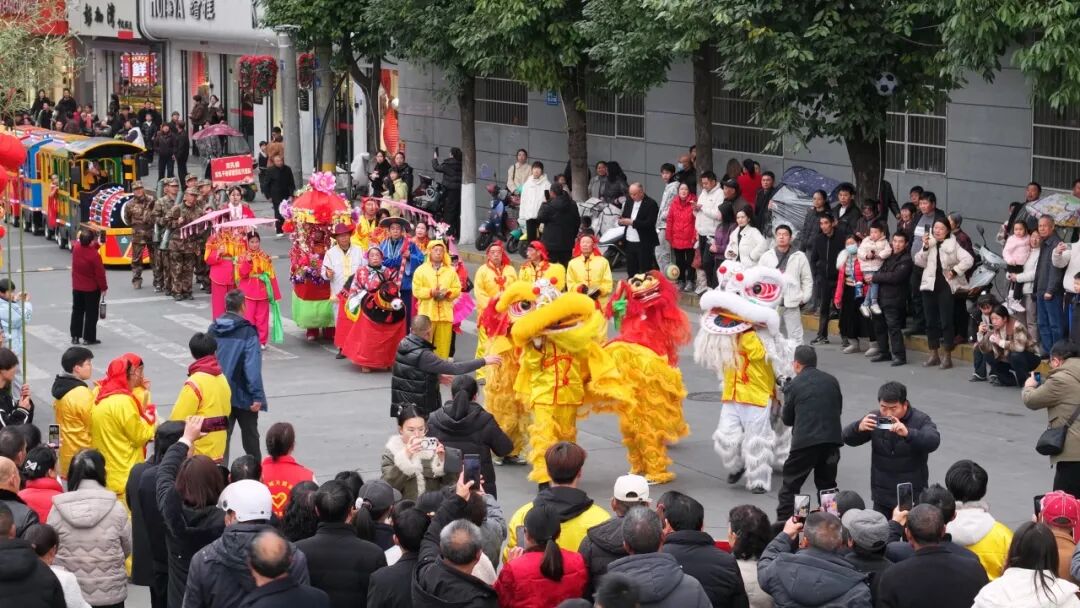 觀眾熊苗苗:很遠(yuǎn)就被鑼鼓喧天的場景給吸引了,看到有很多隊伍在演出,有年紀(jì)大的叔叔阿姨,也有很小的弟弟妹妹。這個場景真的非常熱鬧,讓人看著很開心,年味十足。