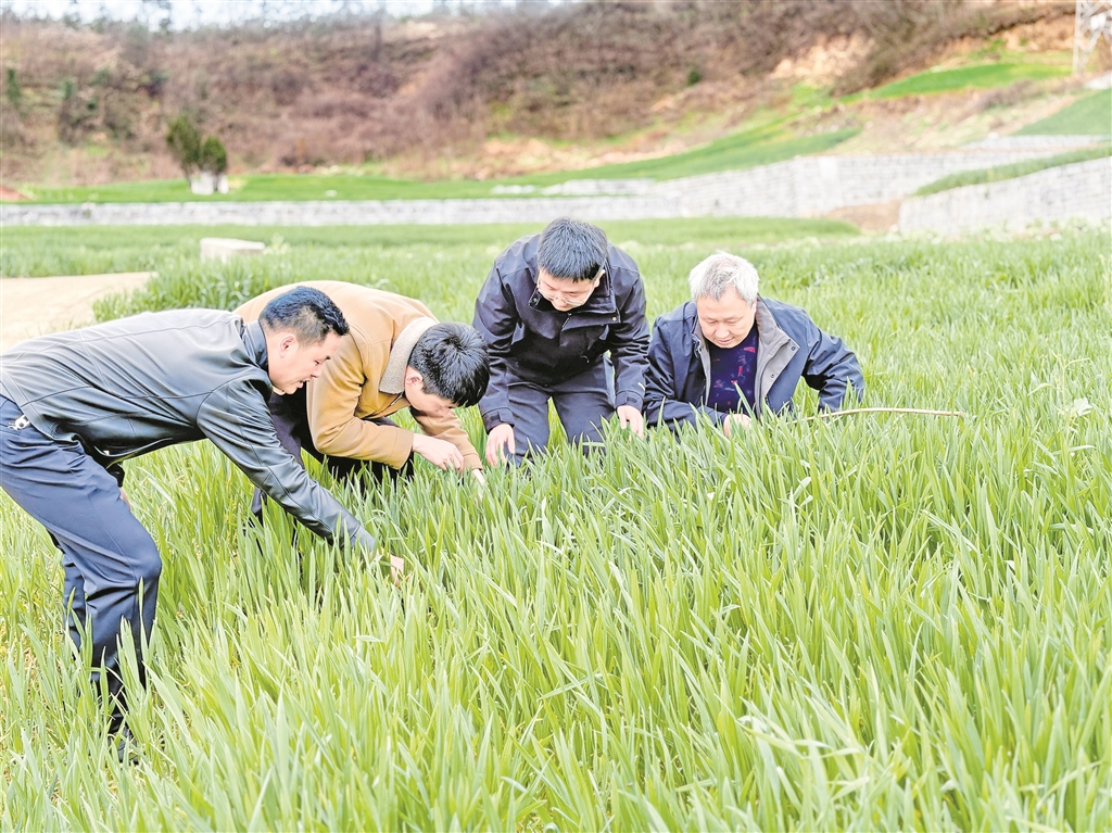 △ 2月24日,漢濱區(qū)農業(yè)農村局聯(lián)合國家統(tǒng)計局安康調查隊、區(qū)統(tǒng)計局,在五里鎮(zhèn)陳家營村,開展小麥苗情、墑情、蟲情“三情”調查及春季田間管理技術指導。